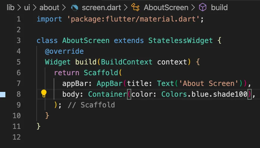 Create a file “lib/ui/about/screen.dart” and add the following: