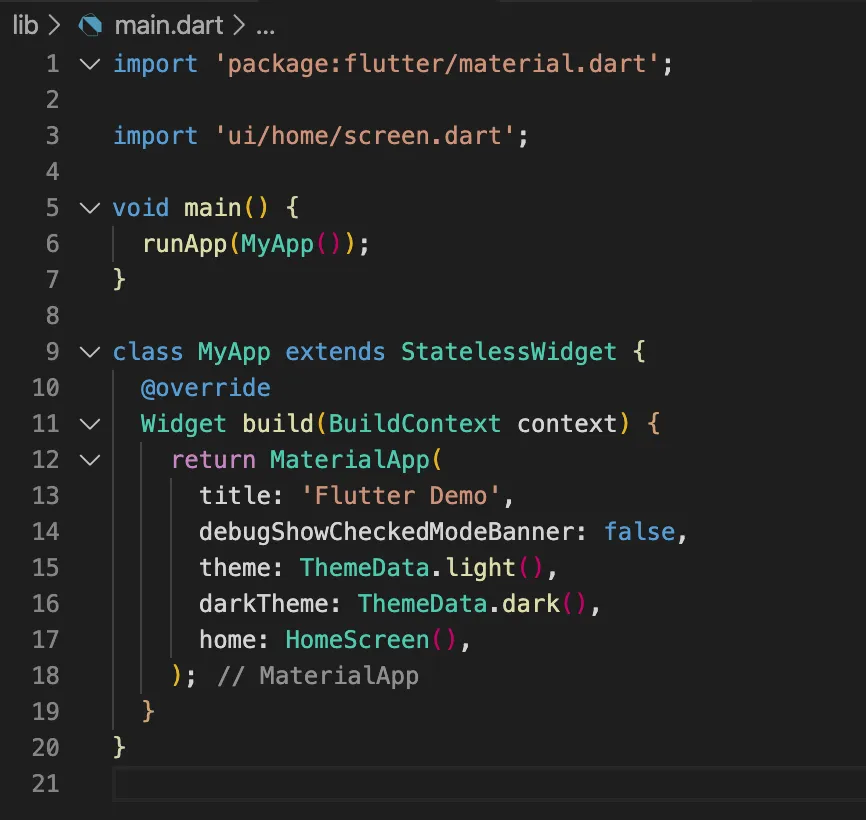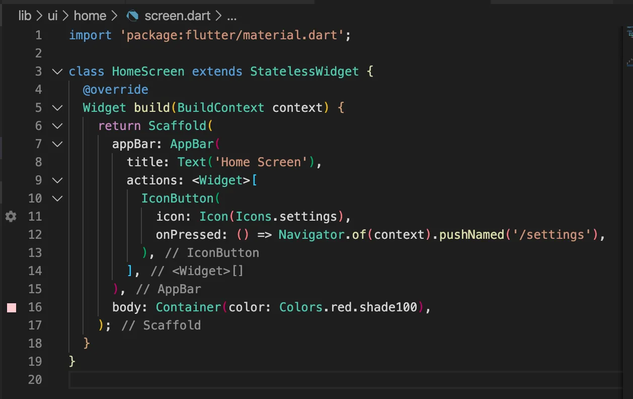 Create a file at “lib/ui/home/screen.dart” and add the following: