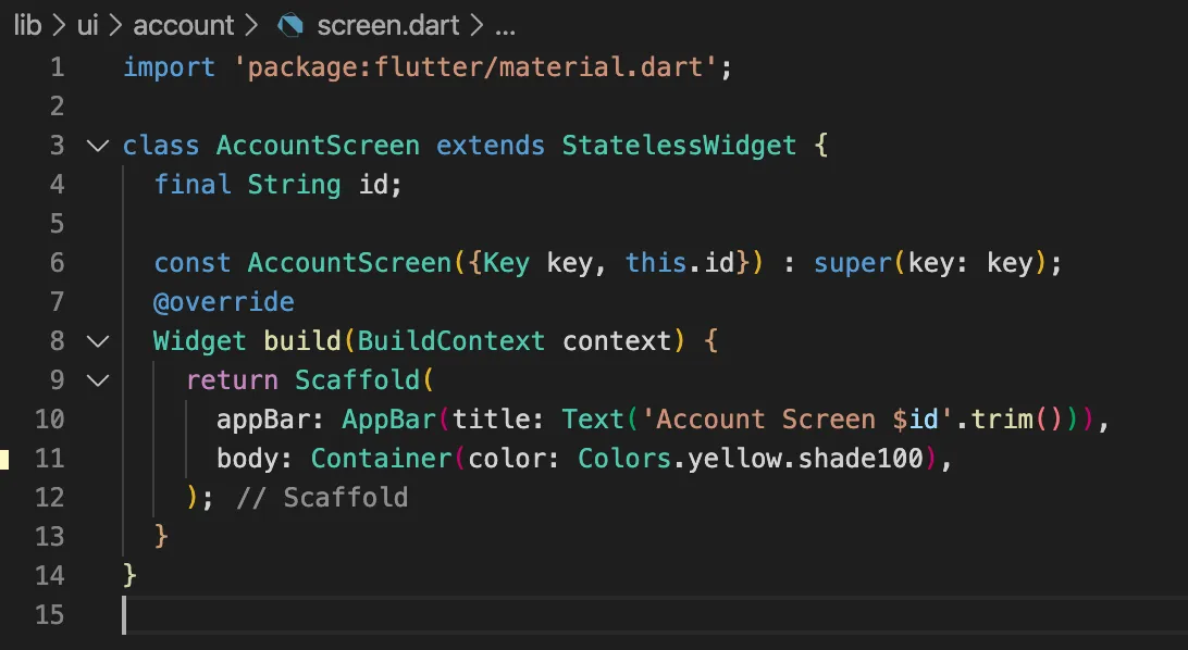 Create a file “lib/ui/account/screen.dart” and add the following: