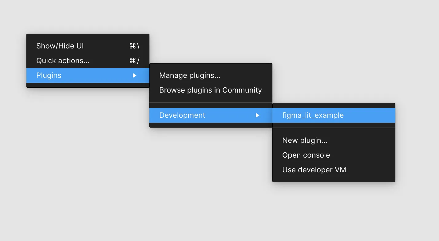 To run the plugin navigate to “Plugins > Development > figma_lit_example” to launch your plugin.