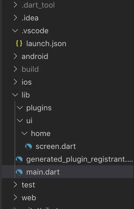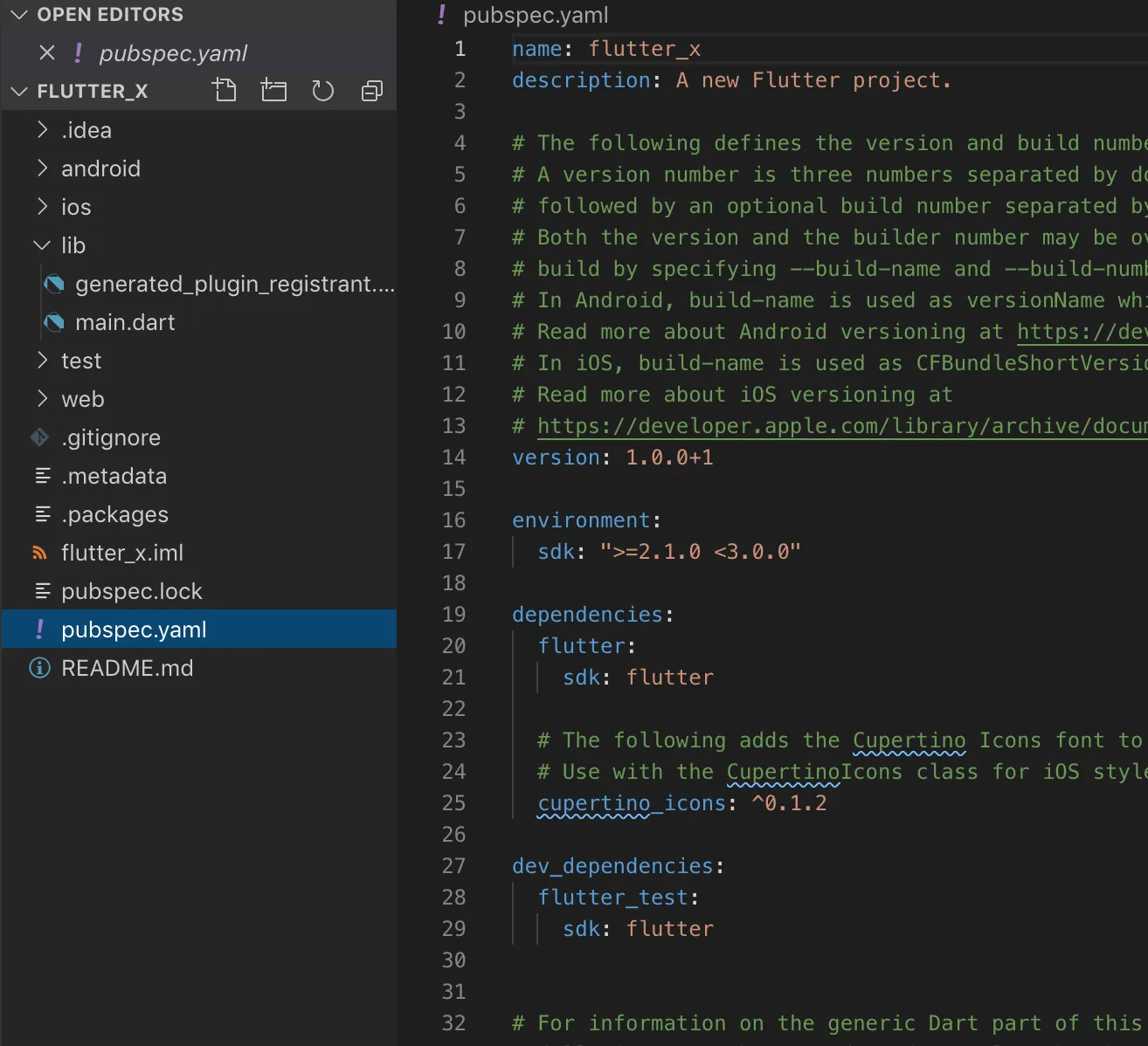Create a new project named flutter_x and it should look like this: