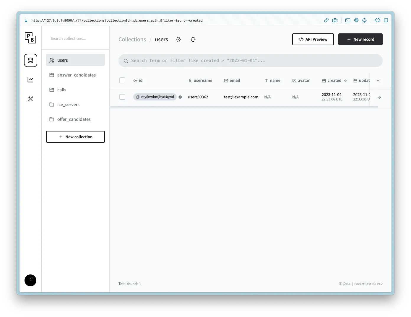 └─ Admin UI: http://127.0.0.1:8090/_/